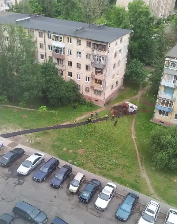 Пока батька находится с визитом в Латинской Америке, дорожные службы осваивают новую технологию по укладке асфальта.