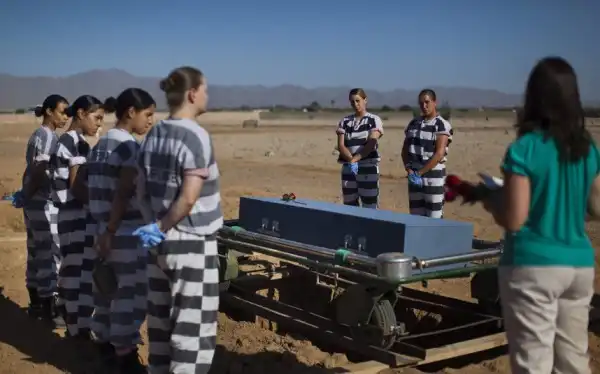 Эта сцена способна вызвать в памяти ассоциации с рабовладельческим прошлым южных штатов США – несколько десятков заключенных в тюремных полосатых робах работают на дороге под палящим солнцем, их ноги закованы в кандалы, а лица блестят от пота. Но действие происходит в современной Америке. Если быть более точным – в Фениксе, а все заключенные, о которых идет речь – женщины.
