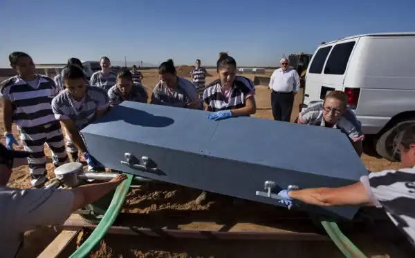 10. Женщины-заключенные принимают участие в похоронах на кладбище для неимущих.