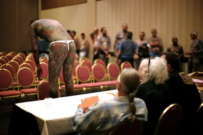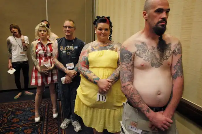 В США постоянно проходят массовые съезды любителей и мастеров тату, которые демонстрируют свои рисунки на коже.