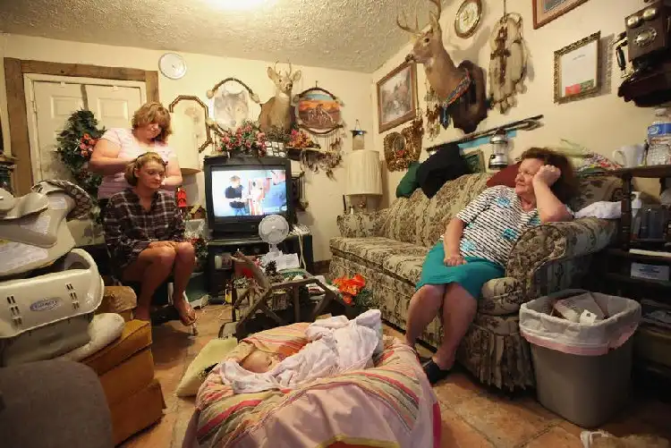 Сейчас в США насчитывается около 16% бедных – наивысший показатель со времён Великой Депрессии. Но в некоторых районах (каунти) штата Кентукки их – до 45%. Это самые бедные районы США (не считая такой территории, как Пуэрто-Рико). До конца 1990-х основное пропитание местным жителям давала добыча угля и выращивание табака. Но 15-20 лет назад почти все шахты закрылись – рентабельнее оказалось добывать уголь открытым способом в других штатах. Резко упала и потребность в табаке – сказалась мощная антитабачная кампания в стране.