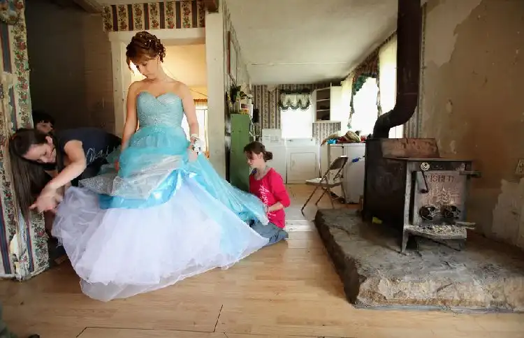 (Британи Брюэр готовится к выпускному вечере в школе (Оусли Каунти). Она живёт вдвоём с бабушкой. Справа можно увидеть в комнате дровяную печь.)