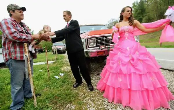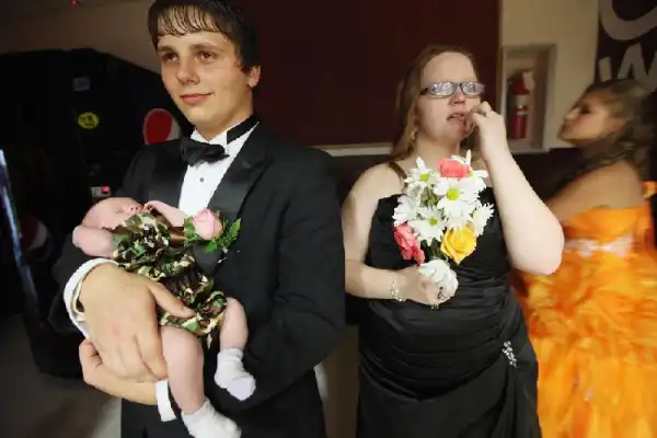 (Семья школьников – Старр Льюис, Трэвис Льюис и их дочь Ариэль Льюис. Они пришли на выпускной вечер в свою школу. (В этих бедных районах отмечается не только многодетность – в среднем 3,4 ребёнка в семье – но и ранняя рождаемость: до 40% детей появляются на свет у мам, которые моложе 18 лет))