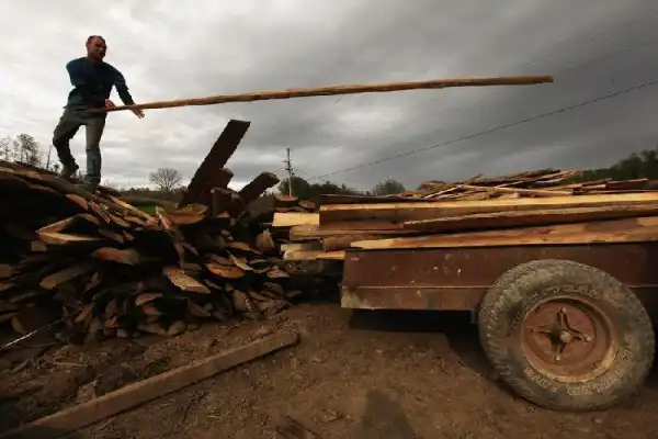 (Дар бедным семьям от местной лесопилки – отходы древесины для печек.)