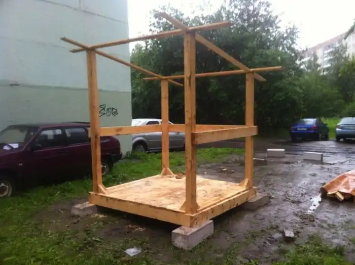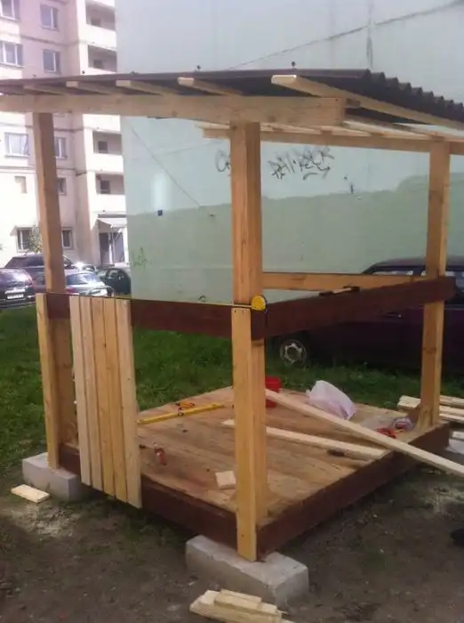Сначала он хотел построить лавочку, но в конечном итоге решено было строить беседку.