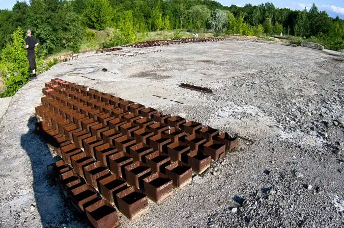 Конструкция этого бункера состоит уз двух цилиндров с диаметром 36 метров,
