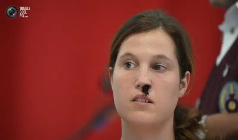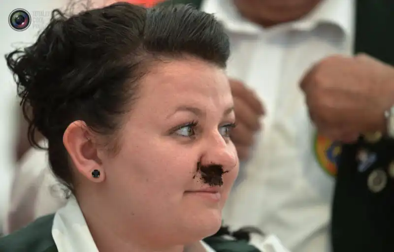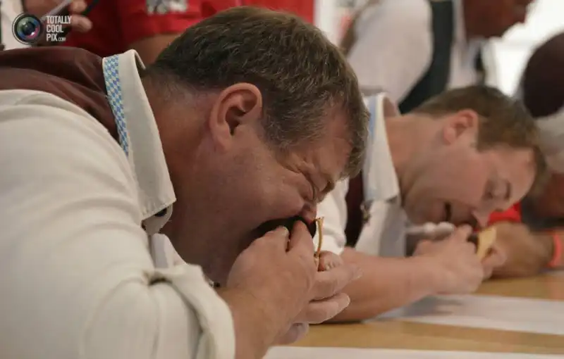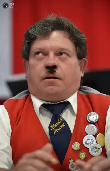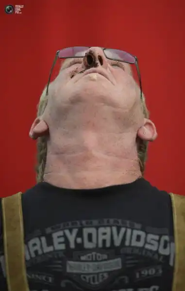 Это снимки, которые были сделаны во время всемирного чемпионата по нюханью табака, прошедший в Пентенхаусене, Германия. Система начисления очков довольно сложная и учитывает как количество табака, которое участник сумел вдохнуть, так и чистоту его рабочего места и носа. Победителем соревнования считается тот, кто сумел вдохнуть максимум табака и при это рабочее место его осталось наиболее чистым и аккуратным.