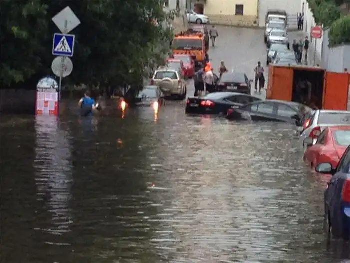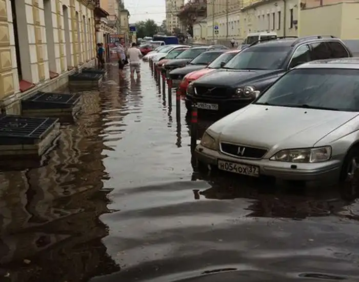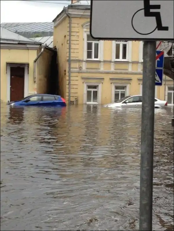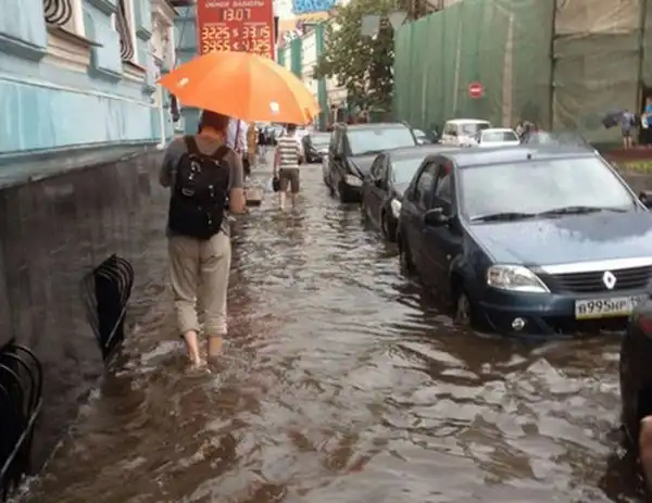 Сильный ливень в Москве стал причиной затопления почти всех центральных улиц столицы. Под водой оказались тротуары и проезжая часть улиц Солянка, Варварка и переулки в том районе. Воды в некоторых местах было так много, что ее уровень даже превышал высоту колес автомобилей.
