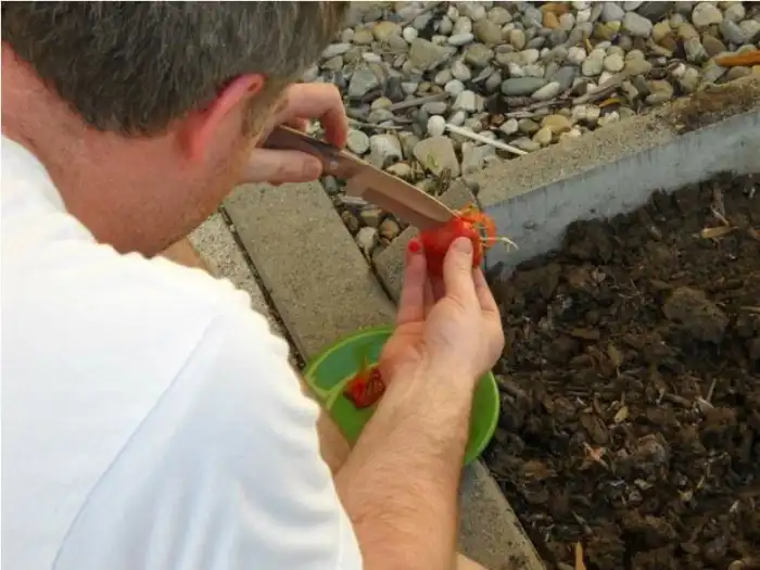 Крайне аккуратно раскурочил помидорку и извлёк все росточки.