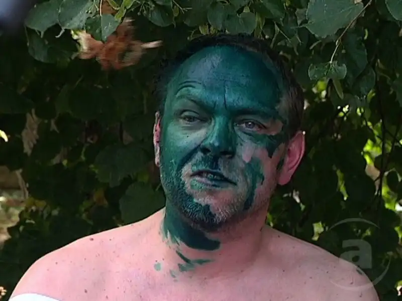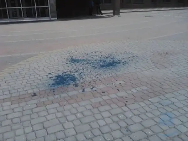 Как оказалось, в здании на него напала девушка, которая кинула банку с зеленкой.