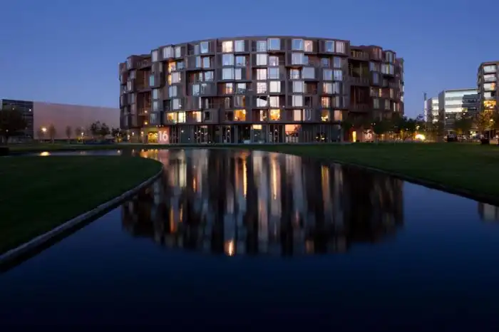 Общая жилая площадь этой футуристической постройки составляет 26 800 кв.м.,
