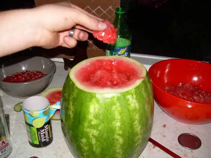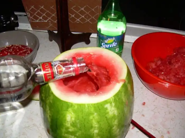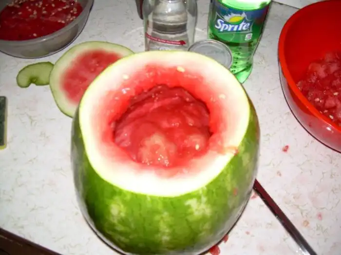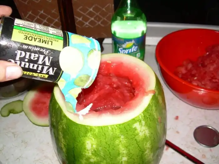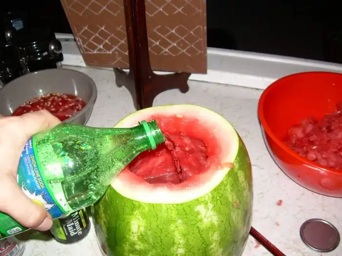 вливаем половину бутылки Спрайта прямо в сам арбуз.