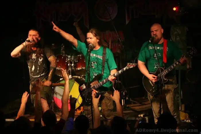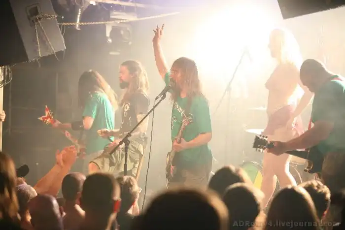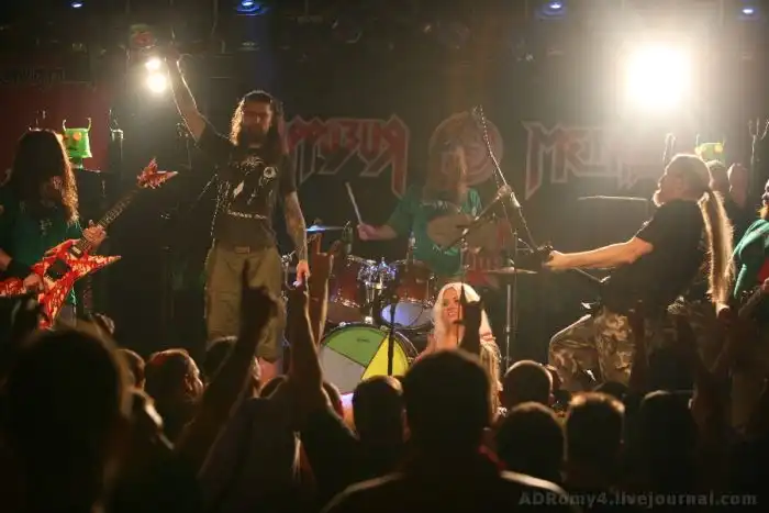 На днях в одном из столичных клубов состоялся юбилейный концерт сторожил отечественного трэш-метала. В честь 25-летнего юбилея, группа "Коррозия Металла" представила свой новый альбом под названием "Война Миров". Время идет, а эта группа все не меняется - трэш-метал и полный вынос мозга с голыми девицами и развратом на сцене :)