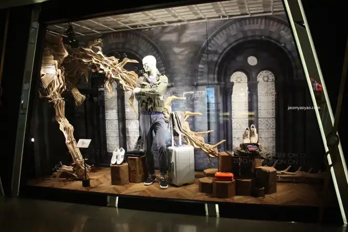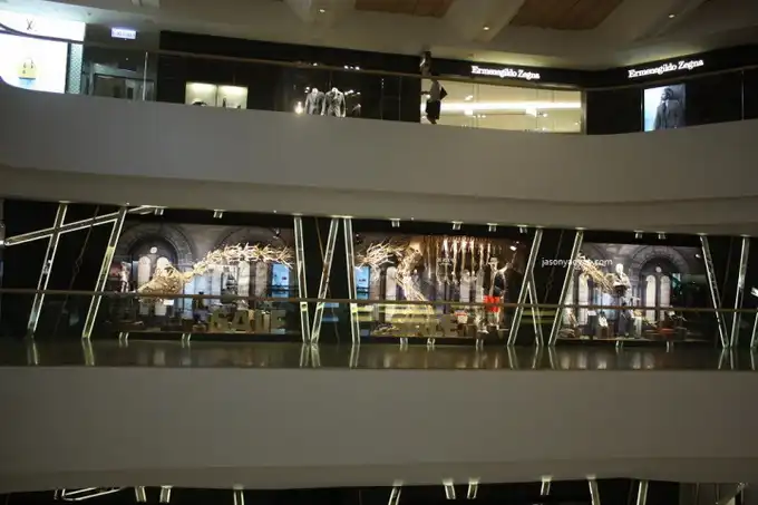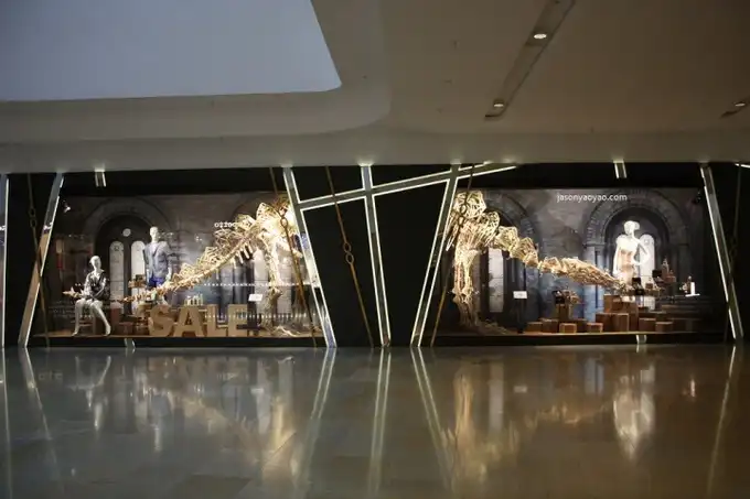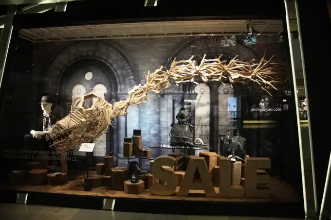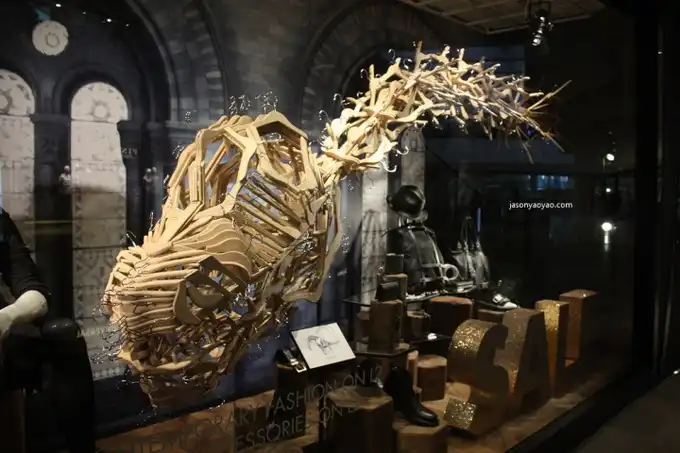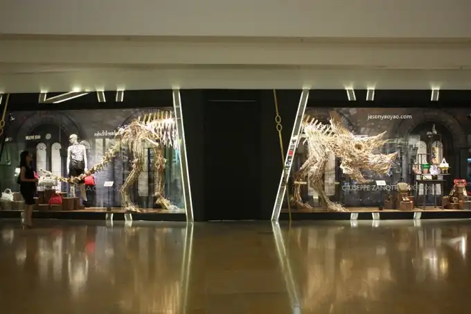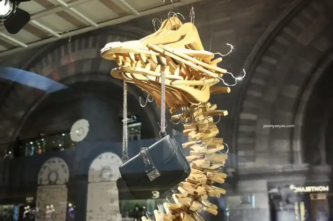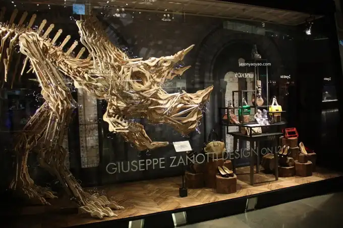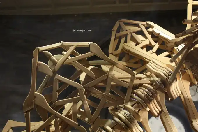 Универмаг Harvey Nichols в Гонконге демонстрирует в своих витринах необычную инсталляцию на тему Парка Юрского периода. Динозавры, построенные при помощи тремпелей, выставлены там на пару с моделями.