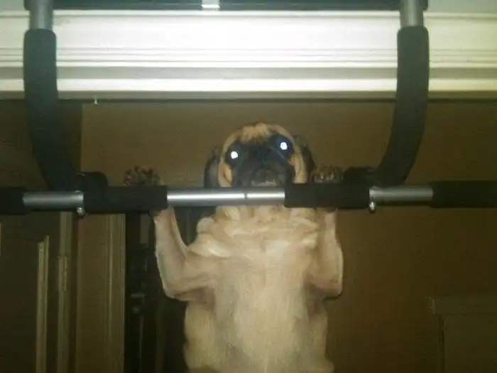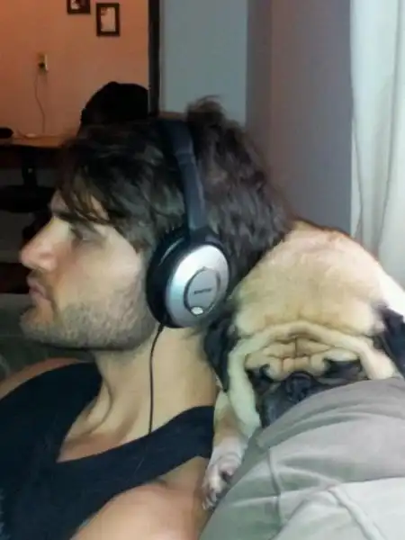Очень позитивные снимки мопса, который всегда рядом со своим хозяином ;)