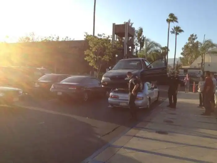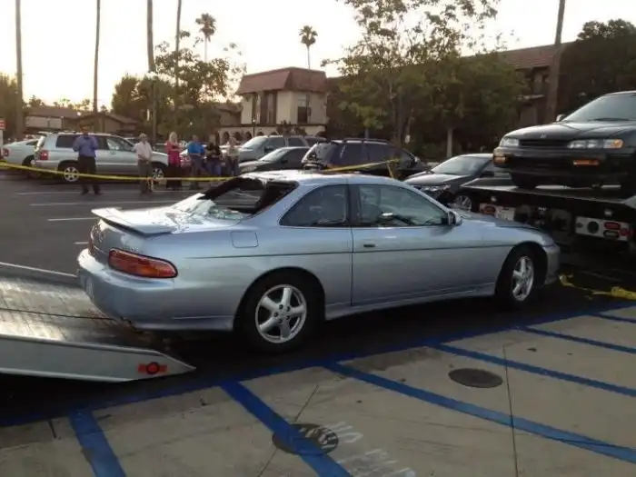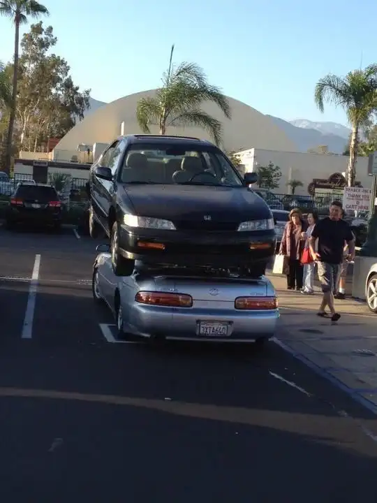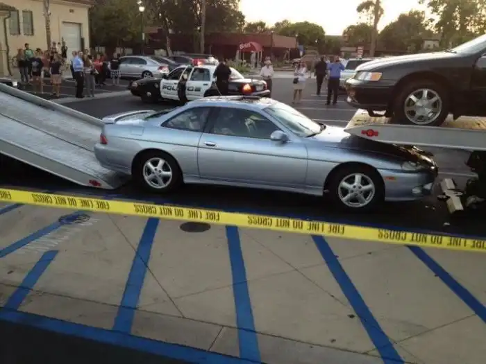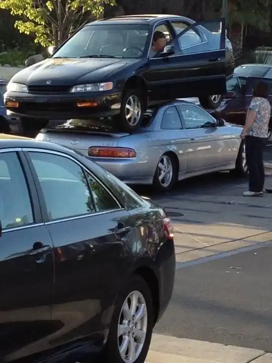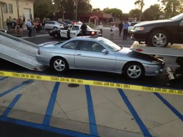 Парень просто сдавал задом на своем Honda Accord, врезался в парковочный знак на стоянке, который послужил настоящей рампой для его автомобиля. Его поездка закончилась прямиком на припаркованном Lexus SC 300, что прилично удивило всех очевидцев этой аварии :)