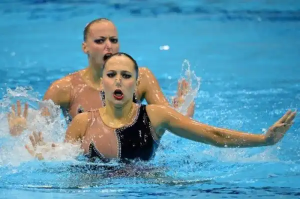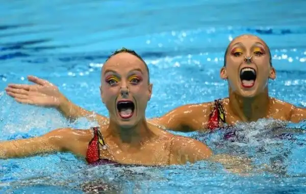 Забавные выражения лиц синхронного плавания