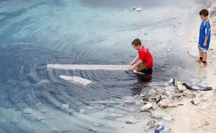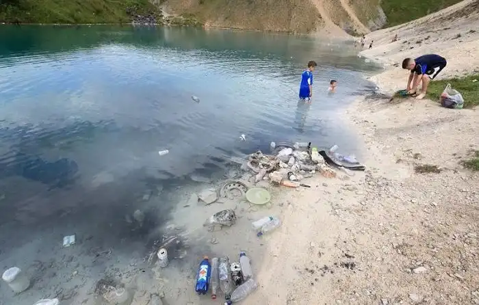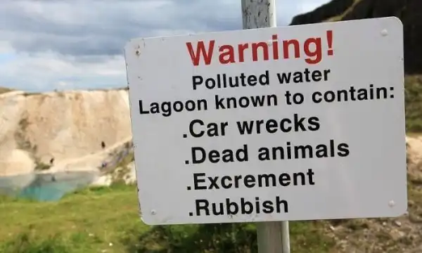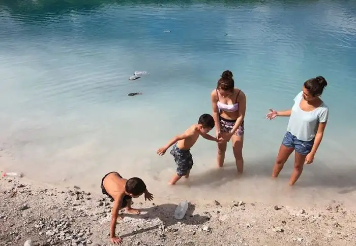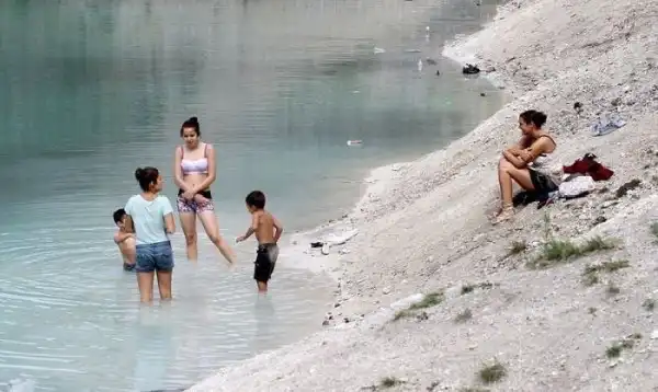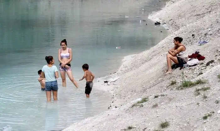 Власти предупреждают посетителей о том, что состав воды в этом карьере сравним с отбеливателем,