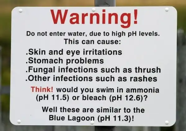У аммиака (PH 11.5) а у хлорной извести (рН 12,6) в "Голубой лагуне" (рН 11,3)!