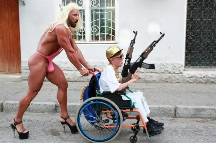 Порой диву даешься, какие неординарные личности живут в нашей стране... Этого фрика зовут Павел Петель, и он называет себя гламурным представителем московской арт-тусовки. Честно говоря, я бы его назвал "больным на голову", а не артистом и арт-моделью.