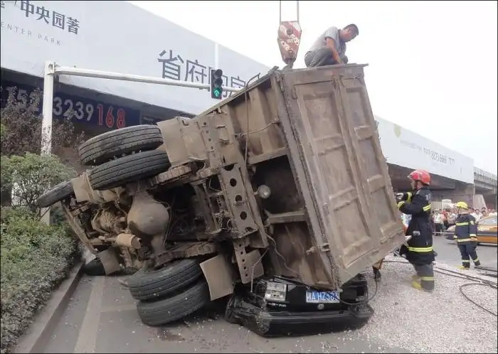 и перевернул тяжелую машину прямо на легковой автомобиль.