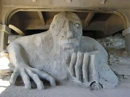 3Фремонтский Тролль находится он в Сиэтле, США, с этим памятником связана довольно интересная история. Дело в том, что местные дети с опаской и страхом относились к эстакадной моста Авроры, но заботливые родители организовали установку памятника в 1990 году. Теперь этот дивный район занял тролль высотой 5.5 метров.