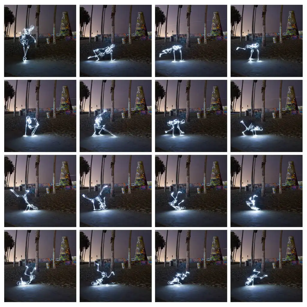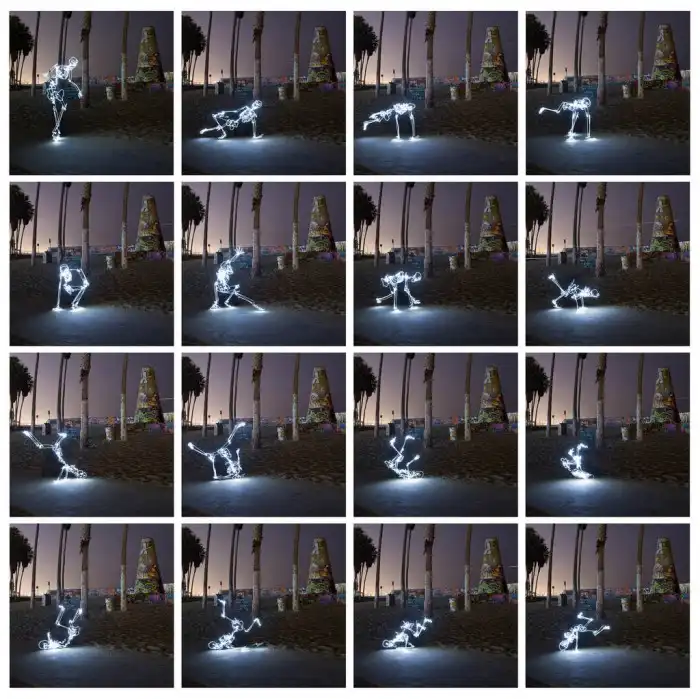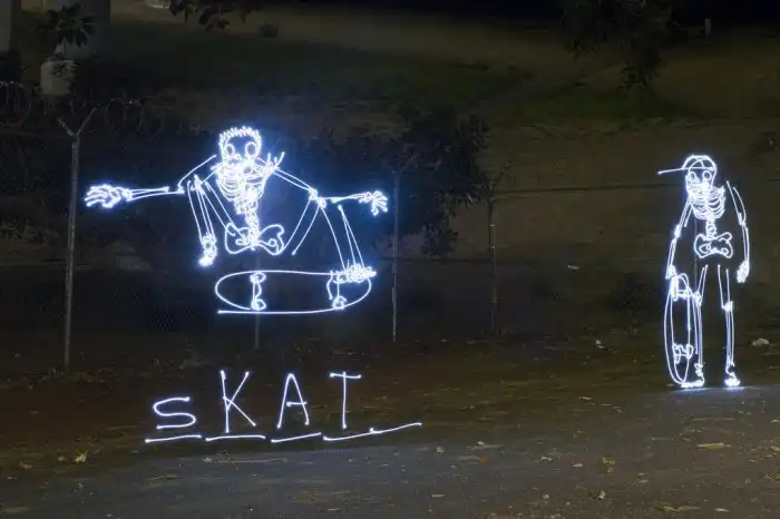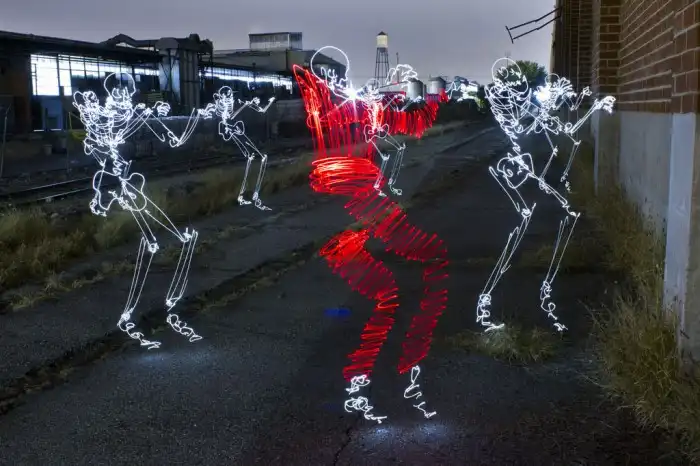 Световыми рисунками, создаваемыми источниками света перед фотокамерой, сейчас уже никого не удивишь, но то, что делает американский дизайнер Даррен Пирсон (Darren Pearson), это точно заслуживает внимания. Особый интерес представляют его скелеты, жизнь которых он запечатлел в серии фотографий. Даррен сделал даже потрясающие гифки, глядя на которые многие думают, что они сделаны на основе фотошопа, что, конечно же, не так.