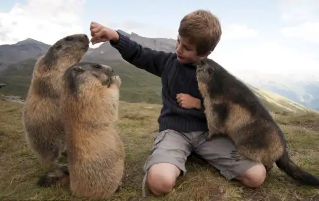 С тех пор, как восьмилетний Маттео Вальч (Matteo Walch) увидел этих альпийских сурков, прошло четыре года. За это время он стал для зверюшек практически членом стаи, они не боятся его и подпускают совсем близко.