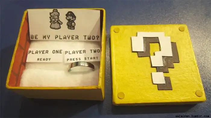 Для этого она собрала своими руками эту прикольную коробку-загадку в стиле "Супер Марио".