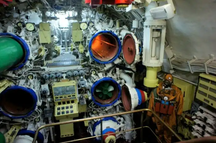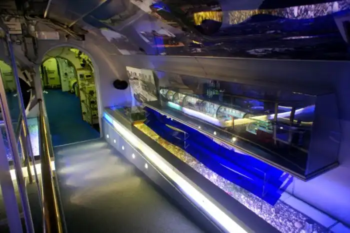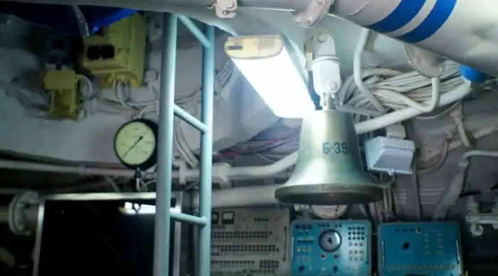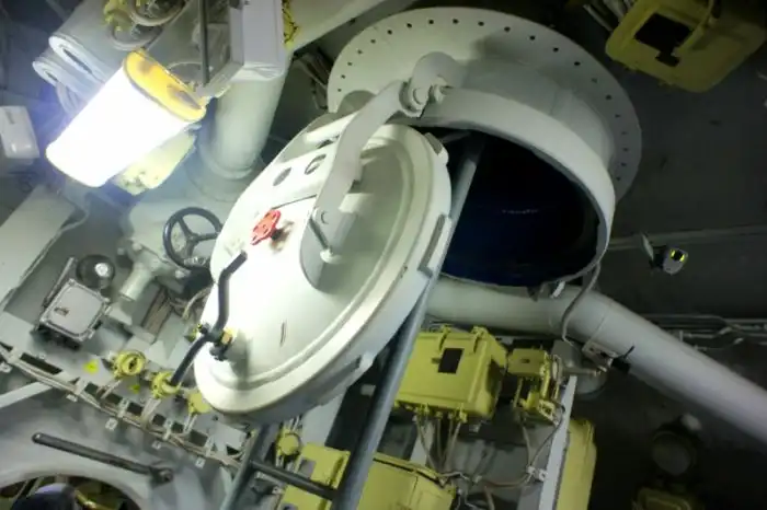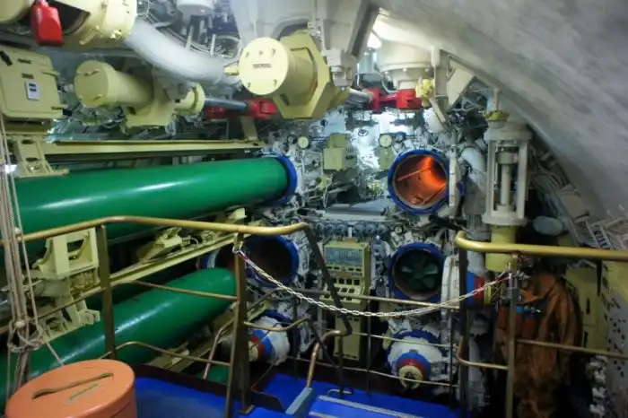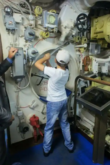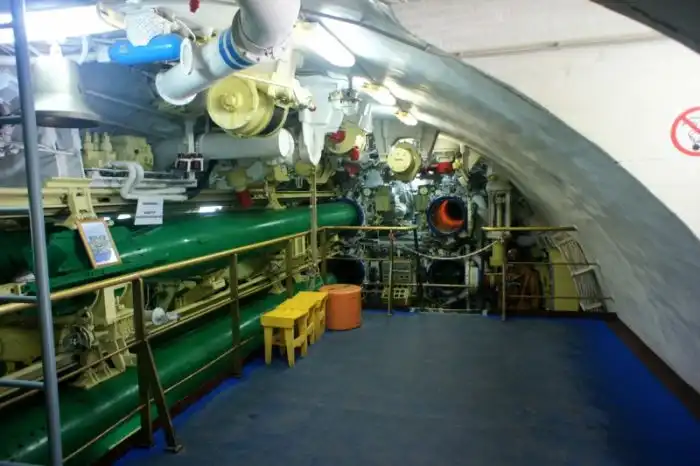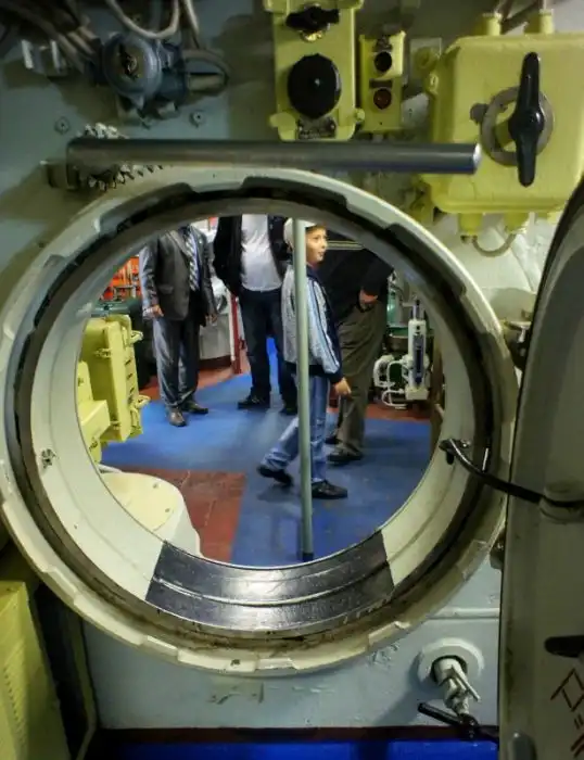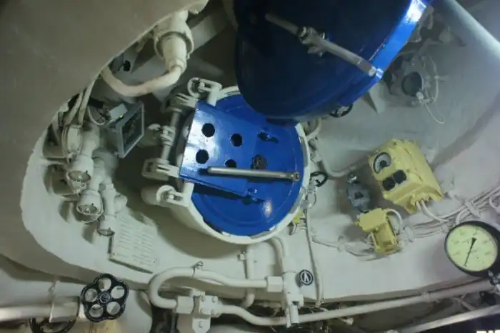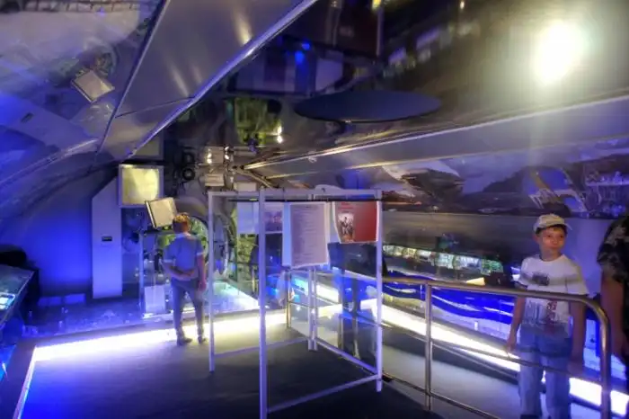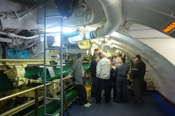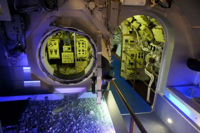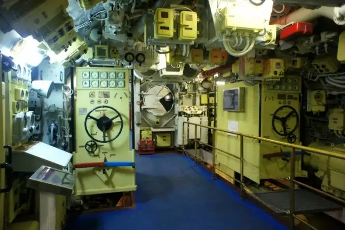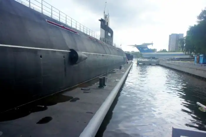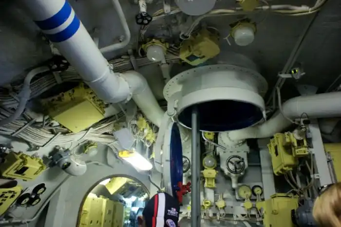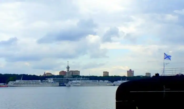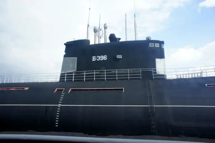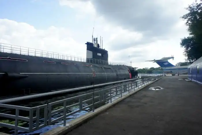 На Химкинском водохранилище пришвартована массивная субмарина,