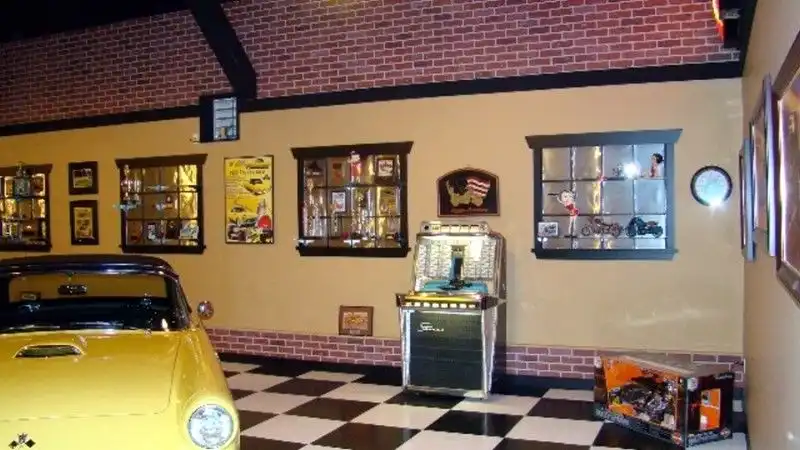 С виду непривлекательный старый ангар, который раньше использовался для содержания птицы с близлежащей фермы. Но за его воротами скрывается настоящий рай для любителей ретро-автомобилей. Внутри него не только находится коллекция редчайших тачек, но и есть уголки для отдыха в стиле середины прошлого века. Вот бы туда заглянуть.