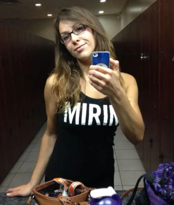 Полная девушка после года тренировок
