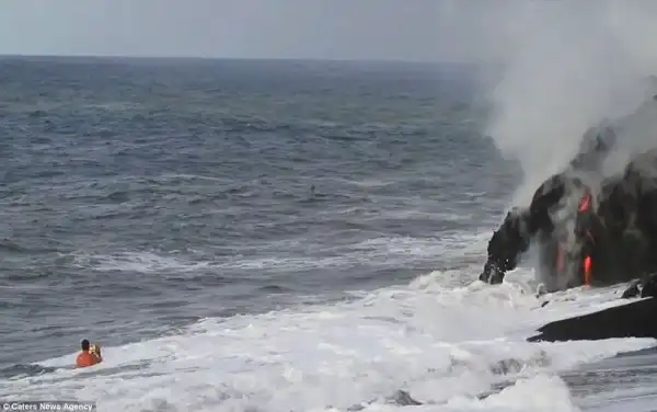 Он решил не упускать такого момента и подплыл чтобы сфотографировать вулкан.