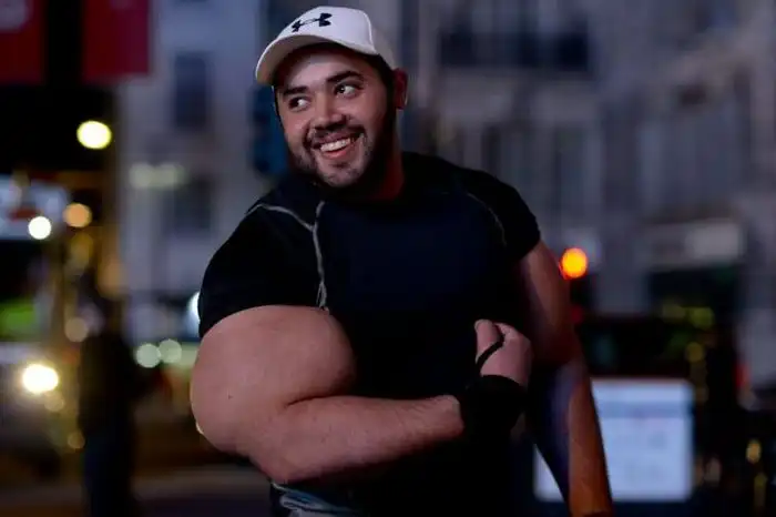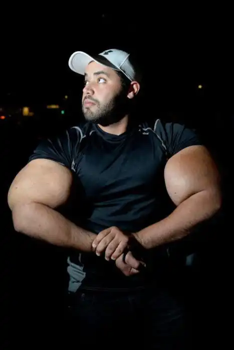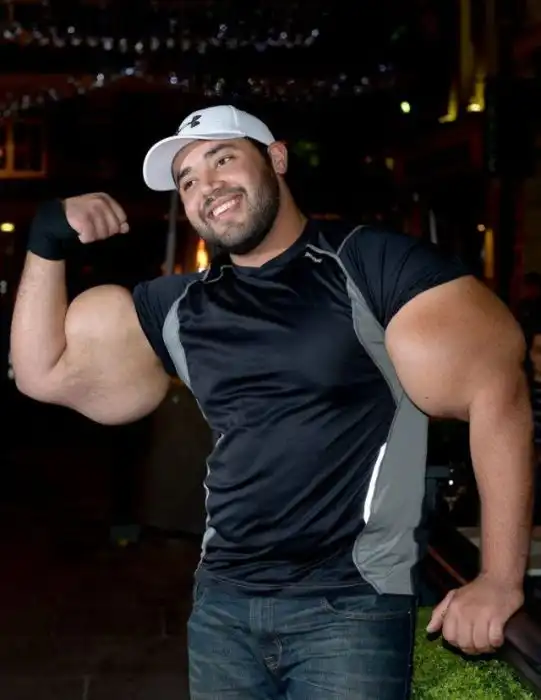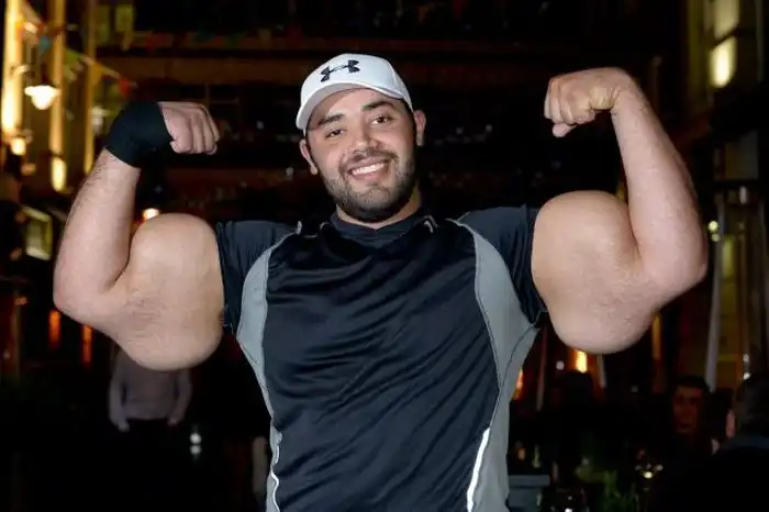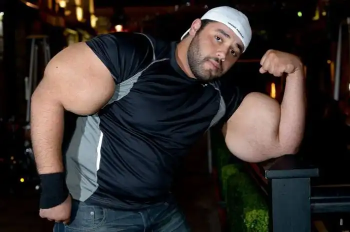 24-летний-египетский бодибилдер Мустафа Измаил попал в свежее издание Книги рекордов Гиннесса как обладатель самых больших бицепсов в мире, размер которых составляет 79 сантиметров. Мустафа занимается культуризмом 10 лет. Он тренируется дважды в день по 3 часа. В любом случае, выглядит это все дело не очень натурально.