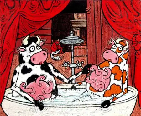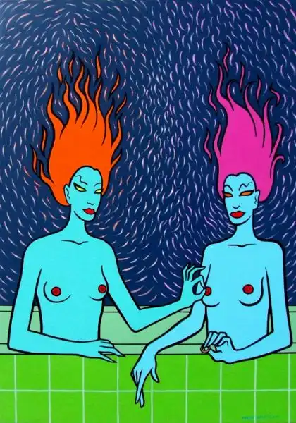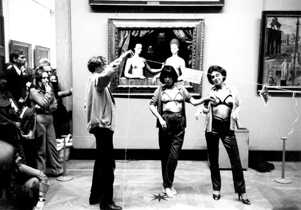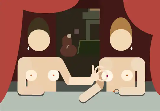 На картине изображена фаворитка Генриха Четвёртого Габриэль д’Эстре (справа). Сестра сидит с ней в ванне и держит её за сосок. Однако это у них не секс. Это символика, которая должна сообщать королю о чём-то. О чём именно – тут толкователи выдвигают несколько версий, но все они как-то связаны с кормлением, с ребёнком, с отношениями с королём. Сестра на картине нужна только как вспомогательное средство для создания знака. Тем не менее, как ни крути, но по факту на полотне – две тёлки с красивыми голыми сиськами. И одна из них аккуратно трогает другую за сосок. Это сексуально. На это сложно не обратить внимания. А уж учитывая, что одна из обладательниц сисек довольно известна и висят они не где-нибудь, а в Лувре, становится понятно, почему сия картина неизвестного мастера школы Фонтенбло давно стала популярным общекультурным визуальным мемом, как это сейчас говорят, а также мясом и хлебом многочисленных интерпретаторов и подражателей.