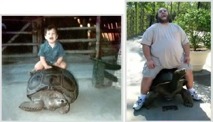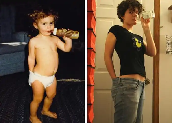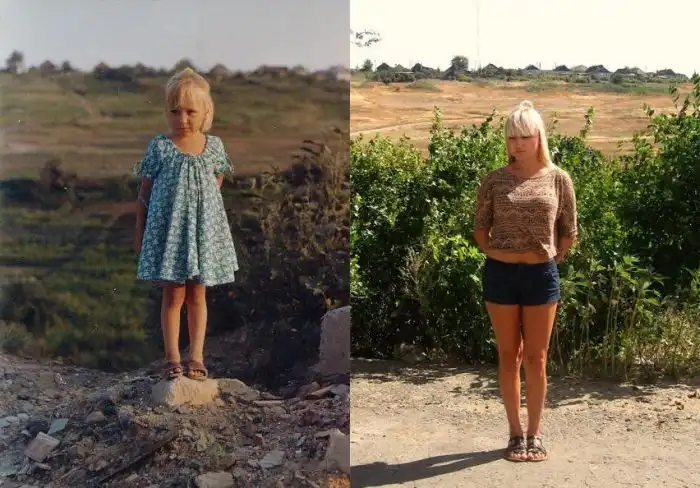 Классные постановочные сравнительные снимки людей в стиле "В детстве и сейчас".