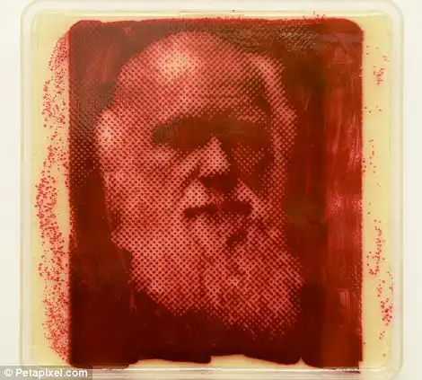 Красной бактерией Serratia marcescens нарисованы Дарвин, Эйнштейн, Пикассо.