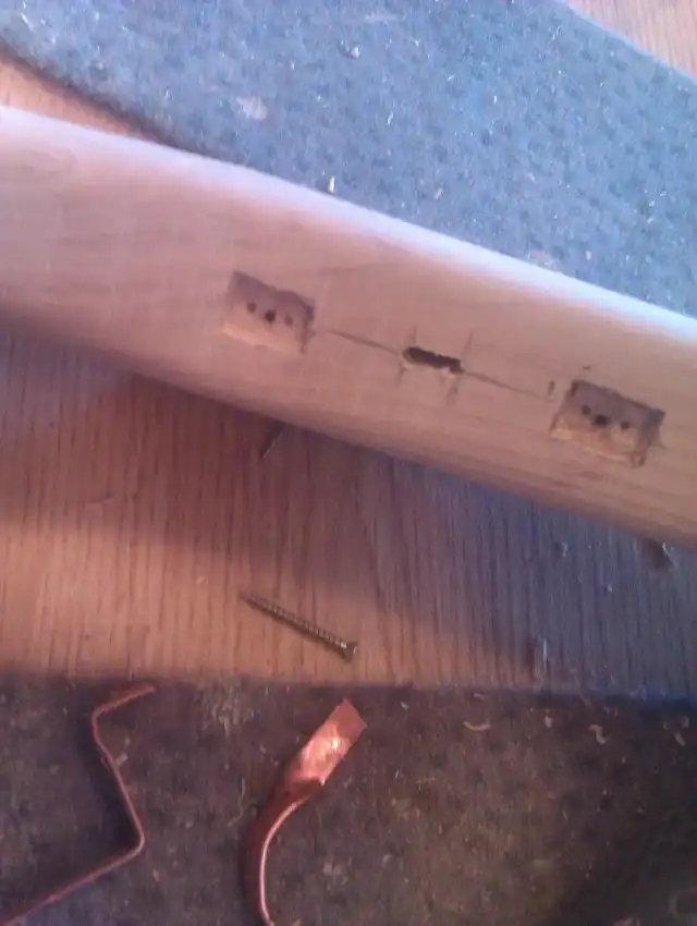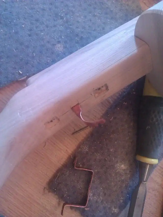 Склёпываем медную пластинку втрое и крепим шурупами.