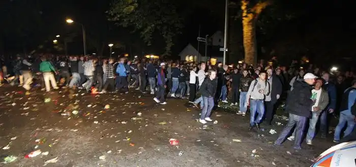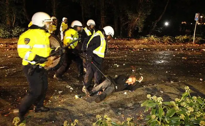 при которых 36 человек были серьезно ранены, а 25 зачинщика потасовки были арестованы властями.