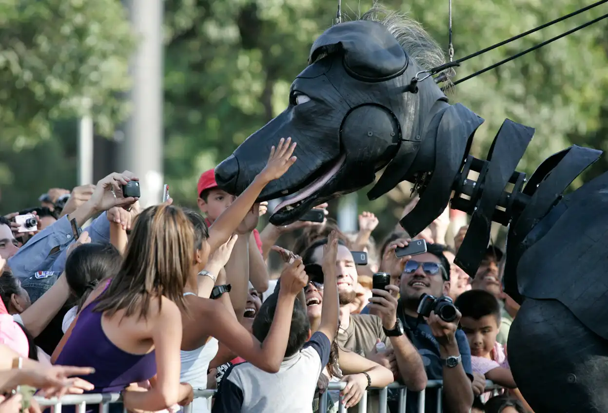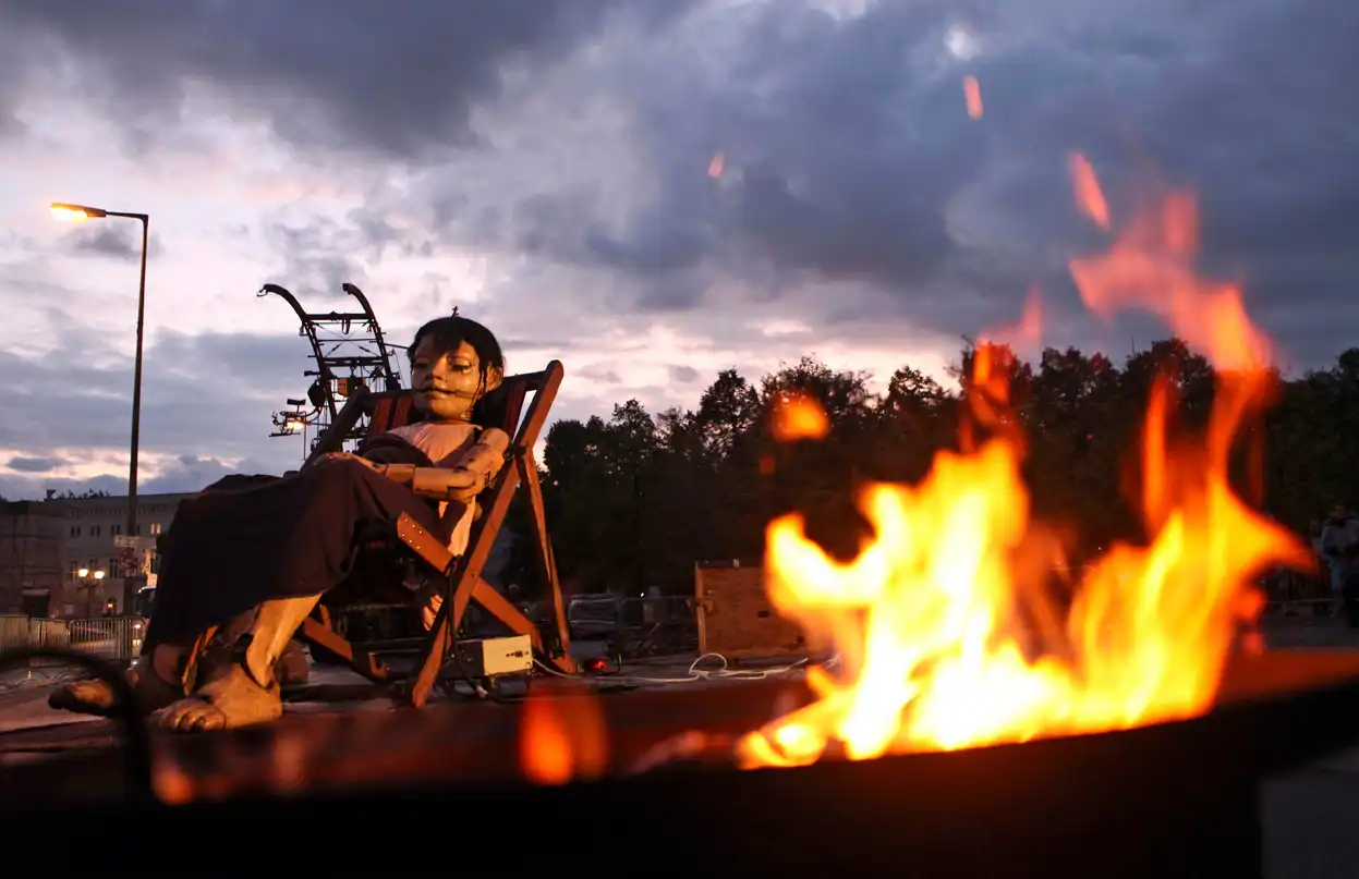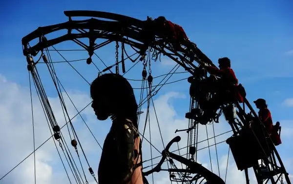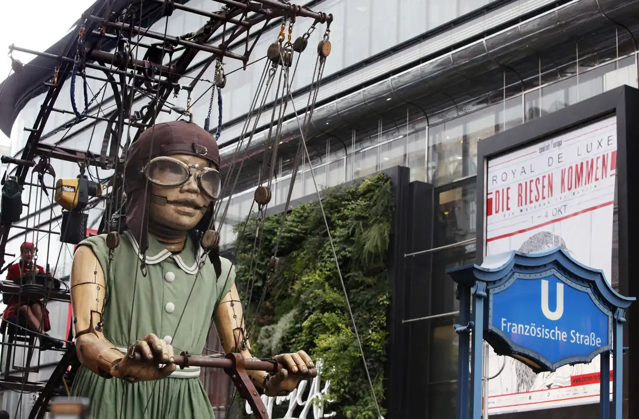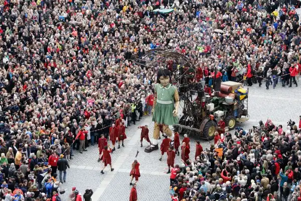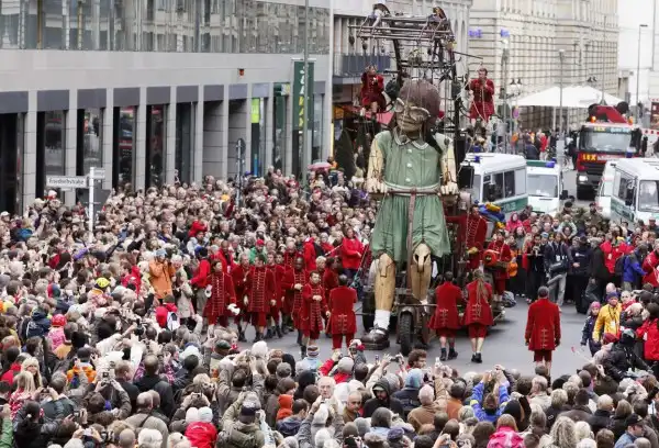 ... компания выступала во Франции, Бельгии, Англии, Германии, Исландии, Чили, Австралии и Мексике. Отличительной особенностью их выступления является использование невероятно огромных и красивых марионеток. Выступая перед публикой, они рассказывают истории, которые могут длиться несколько дней и проходят через весь город. Кукловоды маневрируют огромными марионетками (некоторые из которых достигают в высоту 12 метров) через улицы, парки и водные магистрали, представляя свою историю на всем протяжении. Ниже собраны фотографии и видео из нескольких последних спектаклей труппы Royal Deluxe со всего мира. Все изображения кликабельны.Вот красивое видео их спектакля в Берлине: