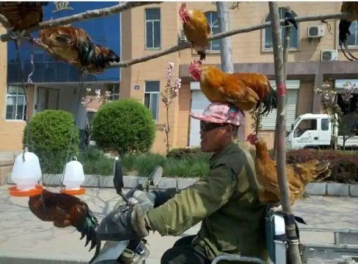 А вот так в Китае производится транспортировка кур от птицефермы до местного рынка ;)