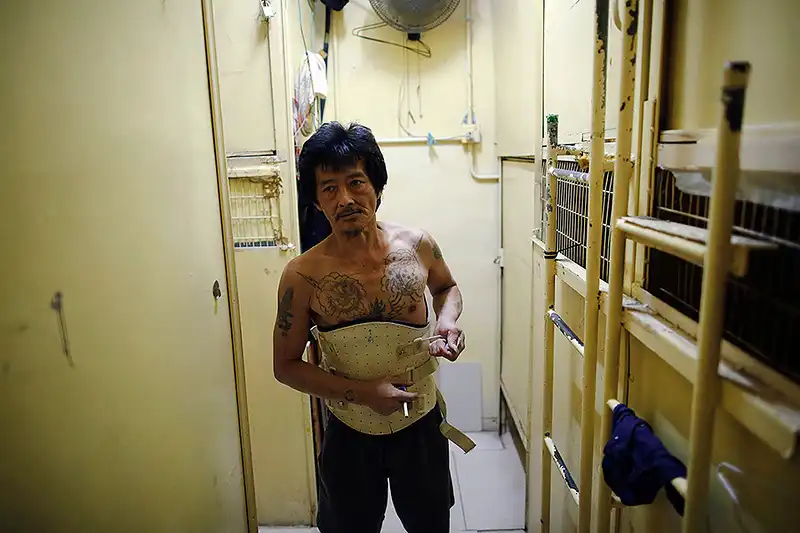 В одном из таких хостелов живут 24 человека. Они называют эти «гробы» своими домами. Некоторые нищие остаются там навсегда, другие — на время, пока не смогут подыскать себе жилье получше, говоря, что это «лучше, чем ничего».