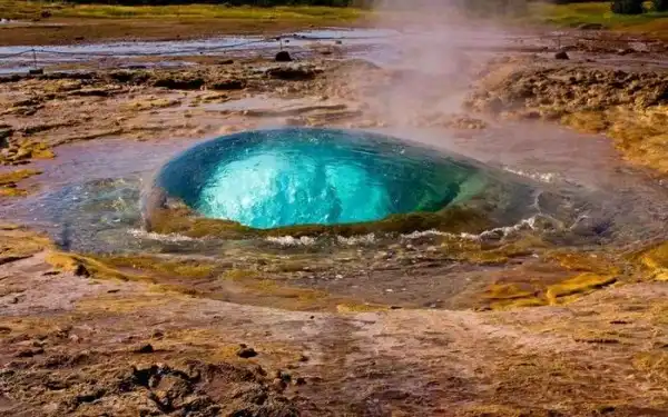Вторым по величине и самым активным гейзером долины Хаукадалур в Исландии - является Строккюр.
