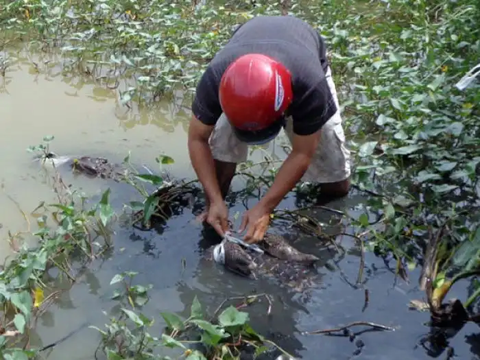 На днях в Южном Вьетнаме было довольно опасно гулять по улицам, ведь из-за разрушения одной из стен крокодильей фермы, все ее питомцы спокойно разгуливали по городу ;) Всего на ферме проживало 580 крокодилов, а на данный момент, поймано и возвращено "домой" только 60 из них :)