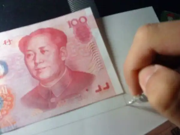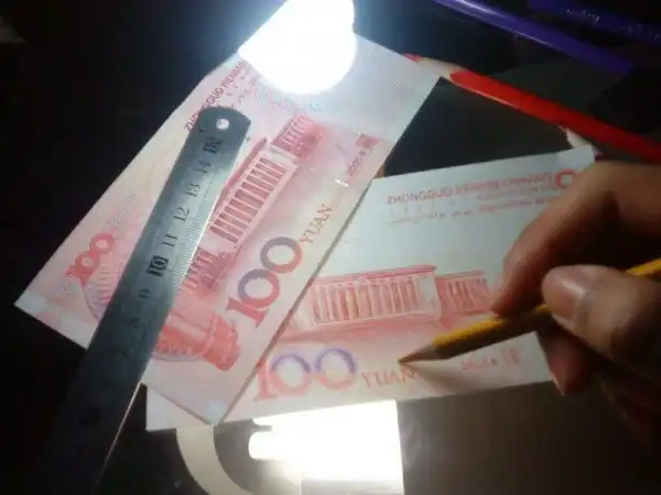 Один китайский студент, пожелавший остаться неизвестным по понятным причинам, решил похвастаться своим талантом художника. С помощью цветных карандашей и авторучек он нарисовал точную копию купюры в 100 китайских юаней, которую неподготовленный человек не сможет отличить от настоящей. Правда, морда вождя подкачала, но тем не менее. К слову, это на наши деньги полштуки деревянных получается.