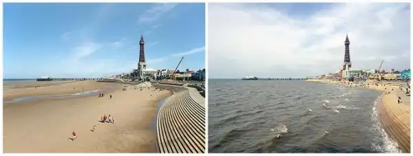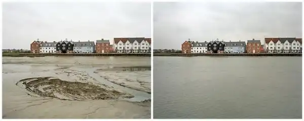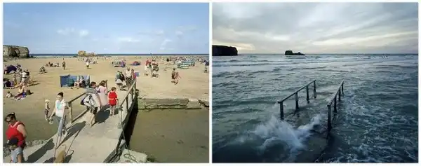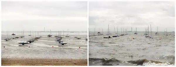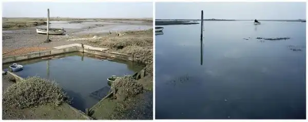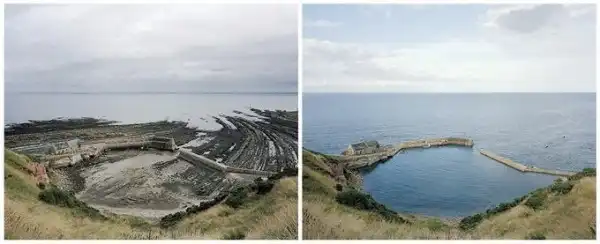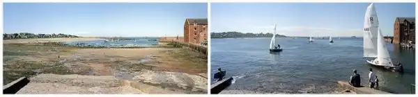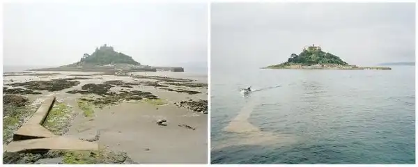 Снимки отливов и приливов - не знаю, можно ли назвать их "до и после". Очень круто посмотреть, насколько сильно прибывает или убывает вода. Снимки мелковаты, но впечатление передают в полной мере.