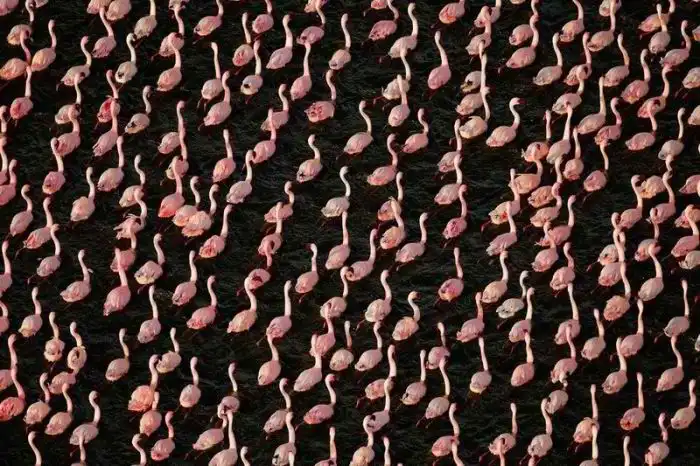 Это необычное озеро называется «Накуру», а находится оно в Кении. Вроде бы ничего сверхъестественного в нем нет, но не тут то было. Именно на этом озере собираются тысячи розовых фламинго, что сразу превращает этот невзрачный водоем в настоящий пир красок!