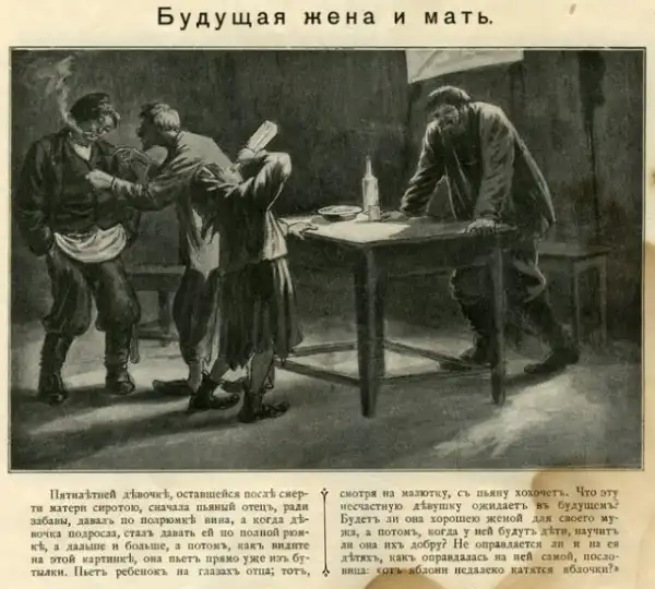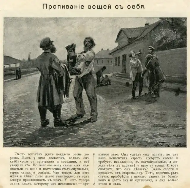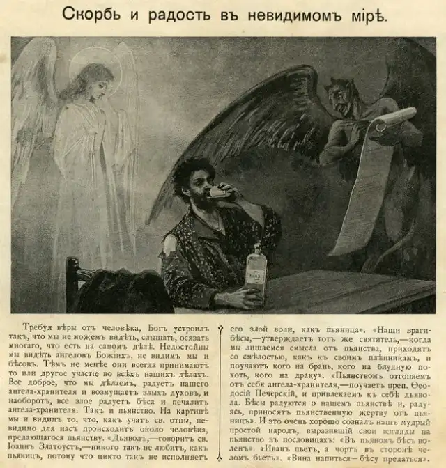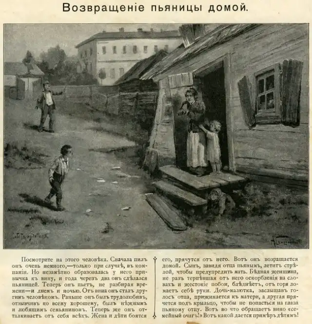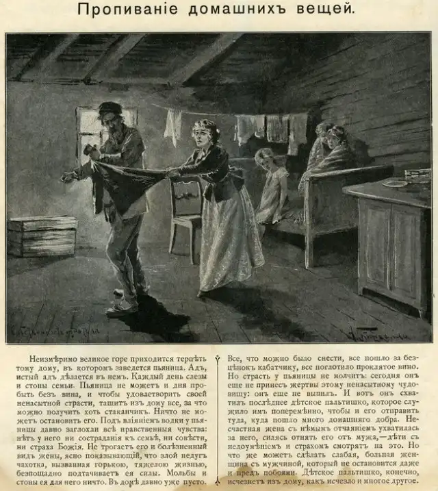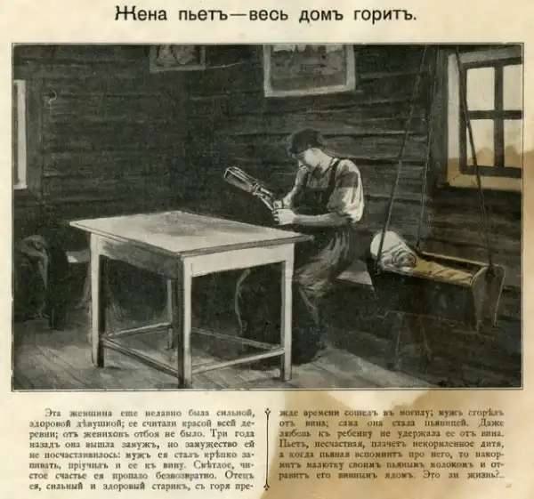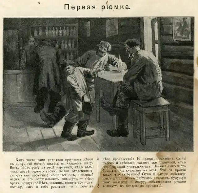 Мои родители передали мне часть небогатого наследство моего прадеда. В том числе интересную и увлекательную книгу, написанную известным дореволюционным борцом с пьянством Дмитрием Гавриловичем Булгаковским. Простой, доходчивый и немного наивный текст, жизненные и в меру утрированные иллюстрации Александра Болеславовича Скиргелло. Просмотрев книгу вдруг представил, как эти картинки показывают при помощи волшебного фонаря и зачитывают соответствующий текст. Есть в них какая-то волшебнофонарность.
