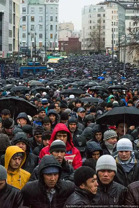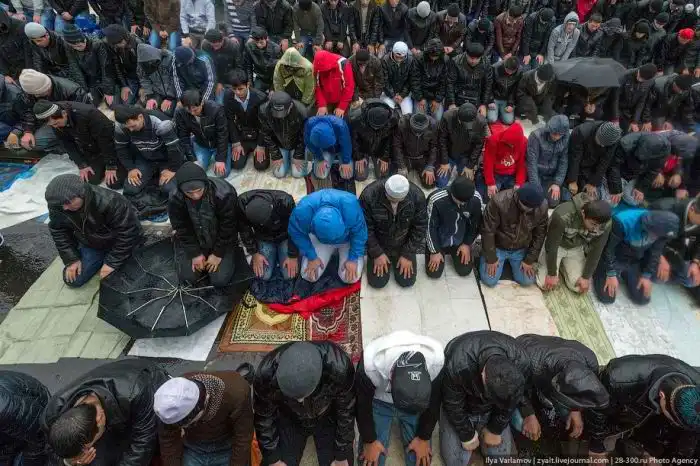 На Олимпийскую площадь, а именно к Московской соборной мечети было просто невозможно пробиться, ведь там зачитывалась проповедь перед намазом, которую хотели услышать все присутствующие. Что самое интересное, проповедь была полностью зачитана на русском языке.