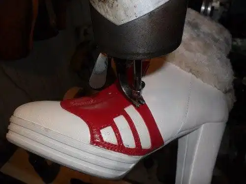 Выкроив детали, тем же клеем приклеиваю и пришиваю на сапожной машинке.